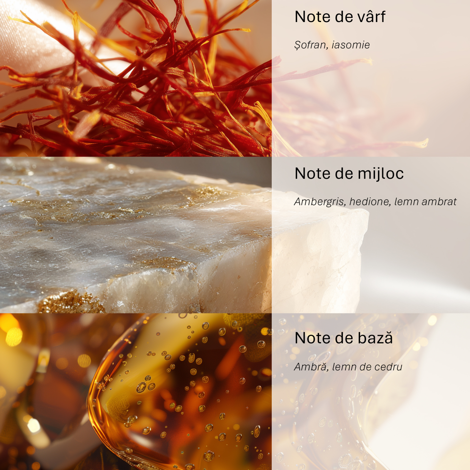Esența devine o prelungire a pielii — un voal de lumină ambrată care transformă prezența celui care îl poartă într-o semnătură olfactivă inconfundabilă.